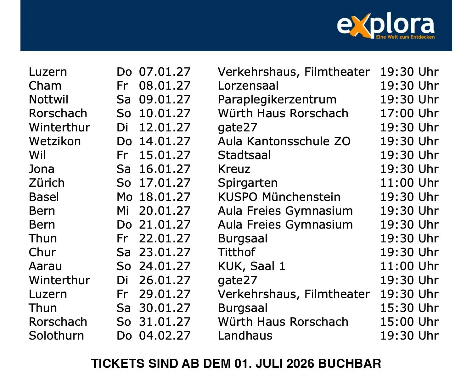 Nach seinem grossen Erfolg mit der Show «Im Reich der Lichter (2017/2018)» und «Die Welt von Oben (2021)» mit über 45’000 Zuschauern kehrt Stefan Forster ab dem 08. Januar 2027 zurück auf die Bühne und entführt uns in den Norden Europas. Seit der ersten Show vom Jahre 2017 hat Forster fast 2 Jahre in Grönland, Spitzbergen, Island, Finnland und Norwegen verbracht und zahlreiche neue Geschichten und Terabytes and Film- und Fotomaterial aufgenommen. IM REICH DER LICHTER 2 wird die Fans vom hohen Norden während rund 2 Stunden in den Bann ziehen und an nie gesehene Orte entführen.